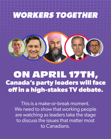 Don’t watch the election debate alone! RSVP for the Workers Together Debate Watch Party to get your free bingo card, join the live chat, and help hold politicians accountable. #WorkersTogether